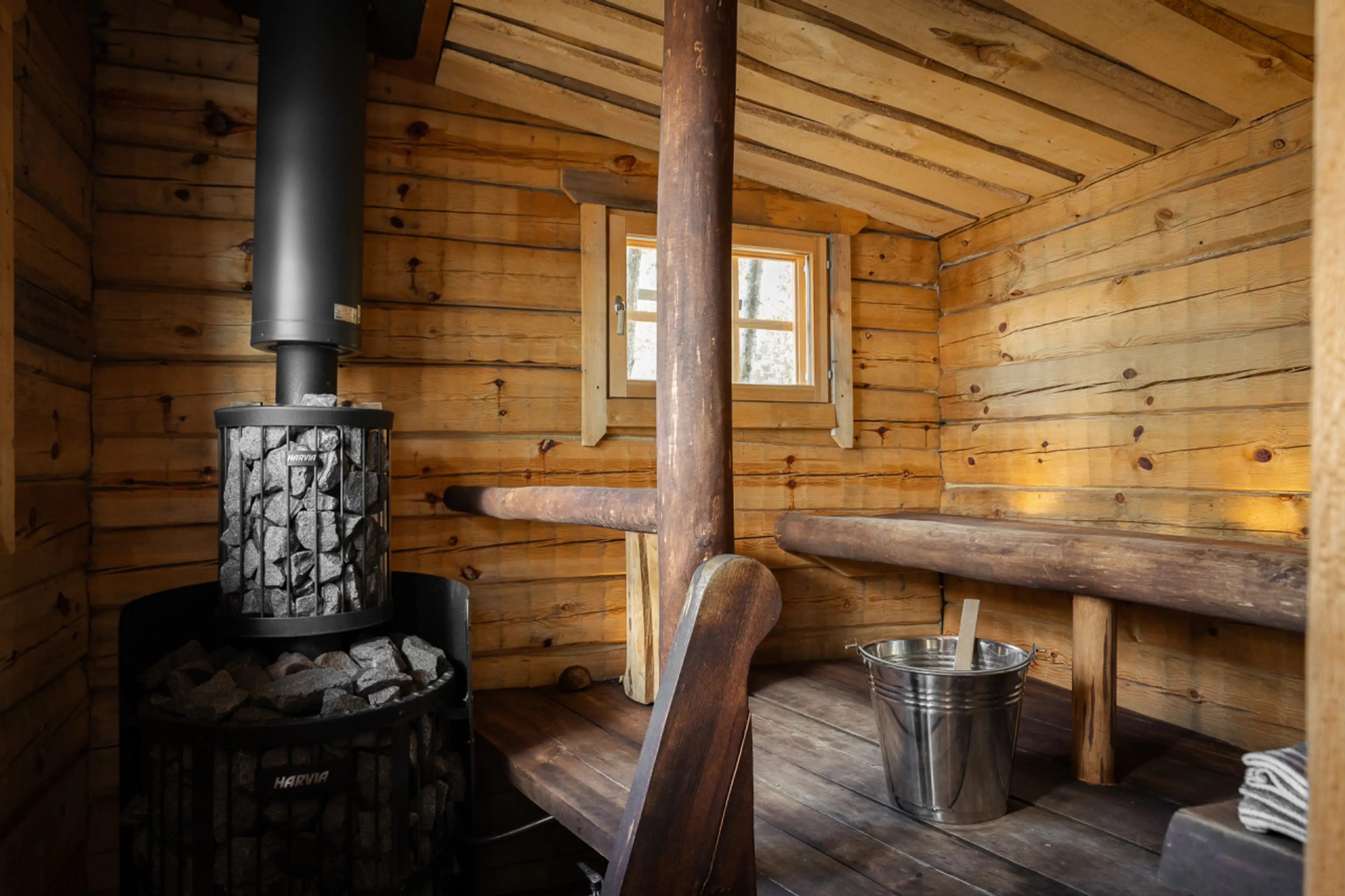 High-guality Villa Sahra with a large outdoor jacuzzi and a unique lakeside sauna. Spectacular views to the Lake Sahra. Available year-round. In this holiday home you will enjoy your holiday both in summer and all year round. approx. 85 m2 holiday apartment with two bedrooms and a double sofa bed...